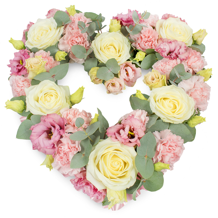 Celebrate life's cherished memories with our Serene Tribute Flower Arrangement. This exquisite bouquet blends the pristine beauty of white roses, the gentle charm of pink carnations, the delicate allure of pink lisianthus, and the soothing touch of eucalyptus leaves. Carefully hand-selected by our skilled florists, every flower is a testament to quality, freshness, and natural elegance.